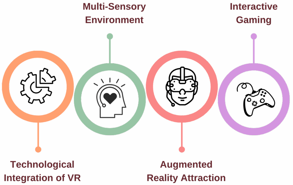 Incorporation of AR and VR arenas syncs for guest experience and operational efficiency. These tech zones feature an attractive element with their seamless operation and transform ordinary spaces into a dynamic and engaging environment.