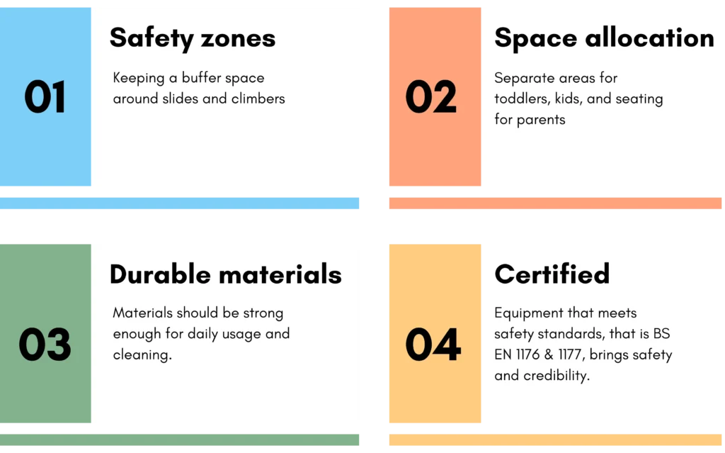 1. What kind of safety standards should I follow for soft play areas?